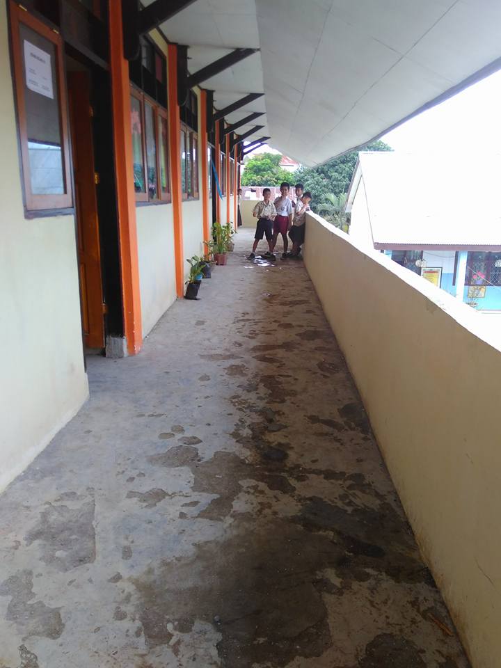 Lanjutnya lagi, untuk ke lantai dua hanya m,enggunakan 1 tangga dan tidak ada pintu/tangga darurat. “Jika trjadi kebakaran bagian barat gedung, siswa-siswi bisa mati terpanggang karena tak bisa lari, atau loncat dari lantai dua dengan konsekwensi mati,” kata Demo.