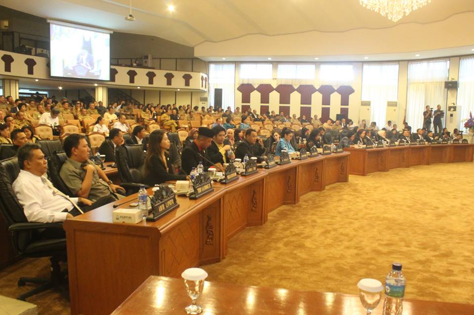 Lanjutnya, faktor kemampuan keuangan daerah merupakan ciri utama yang menunjang suatu daerah otonomi mampu menjalankan otonominya. “Keuangan merupakan salah-satu bobot penyelenggaraan otonomi, artinya daerah otonomi memiliki kewenangan dan kemampuan untuk menggali sumber keuangan, mengolah dan menggunakan keuangan sendiri yang cukup membiayai penyelenggaraan pembangunan daerah,” jelas Wowor. Rapat paripurna juga dihadiri Wagub Steven Kandouw, Sekprov Siswa Rachmat Mokodongan, jajaran FORKOMPIMDA, perwakilan OJK, BI, BPKP, BPK dan jajaran SKPD Pemprov Sulut.