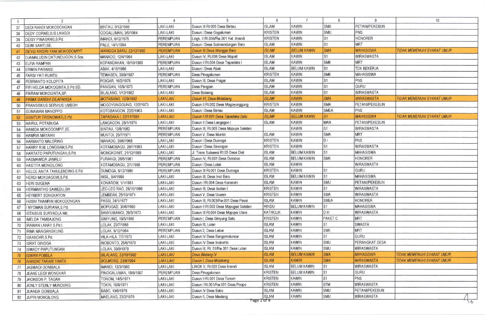 154 Pendaftar Calon PPK Bolmong, 12 Orang TMS Jumat, 1 Juli 2016Sabtu, 2 Juli 2016oleh Redaksi-60 Dilihatoleh Redaksi TOTABUANEWS, BOLMONG – Sebanyak 154 pendaftar Calon PPK untuk Pilkada Bolmong 2017 nanti. Dari 154 calon, ada 12 orang yang tak memenuhi syarat (TMS). Berikut daftarnya : Post Views: 60 Jangan LewatkanKPK Tangkap Gubernur Riau Abdul WahidDPRD Batam Komitmen Kawal Tragedi PT. ASL ShipyardDPRD Padang Lawas Apresiasi Kebijakan Pro-Rakyat BatamGubernur Gusnar Tepati Janji, Bagikan 793 Ekor SapiKinerja Menteri AHY Terbaik