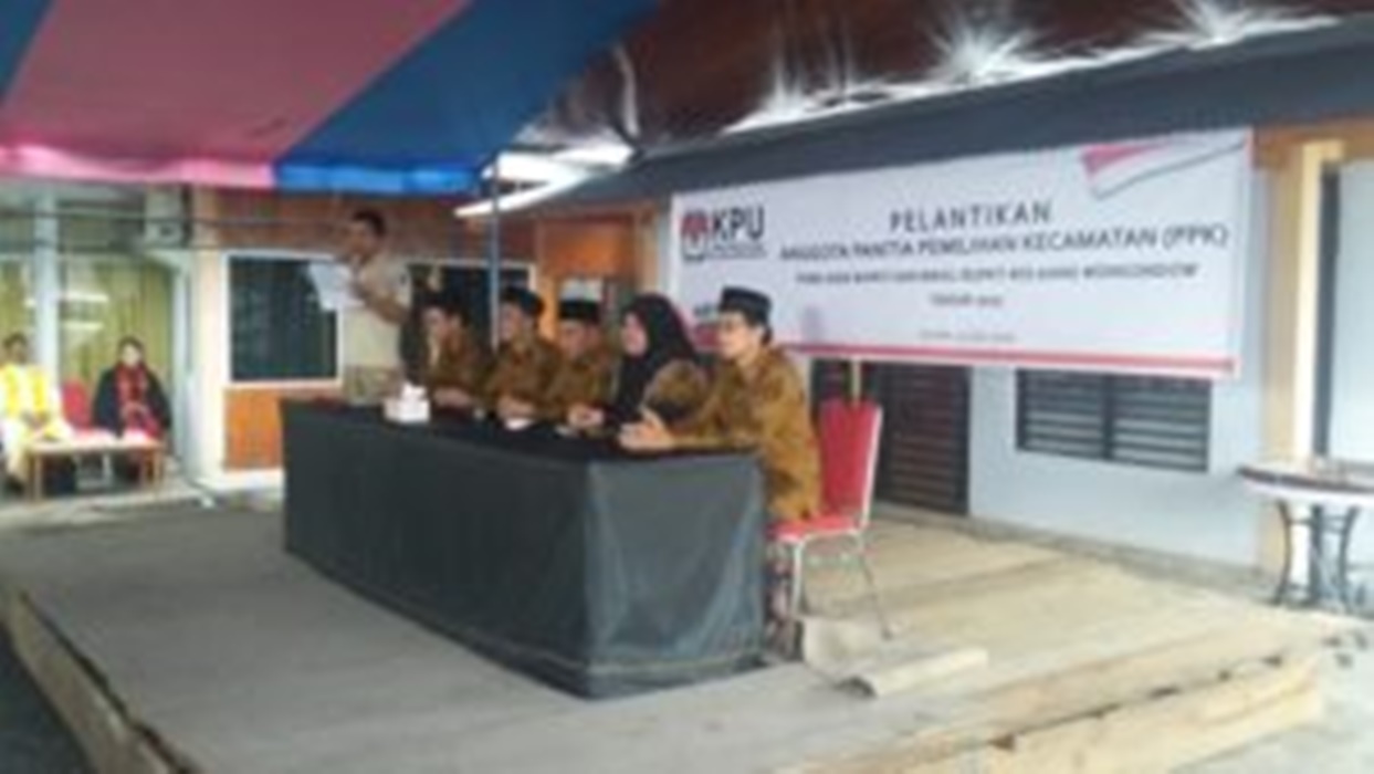 Pelantikan dilakukan dengan pengambilan sumpah dan janji anggota PPK oleh Ketua KPU  Bolmong Fahmi Goebl. Pelantikan disaksikan oleh Panitia Pengawas Pemilu (Panwaslu).