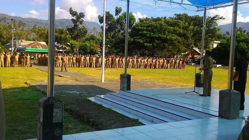 ADVETORIAL, BOLTIM – Wakil Bupati Bolaang Mongondow Timur (Boltim) Drs Rusdi Gumalangit memimpin apel kerja perdana pasca cuti Lebaran Idul Fitri 1437H di Lapangan Pondabo Tutuyan, Senin (11/7). Apel tersebut dihadiri oleh Sekretaris Daerah Kabupaten Boltim Ir. Hi. Muhammad Assagaf, Pejabat Eselon II, III, IV, staf serta tenaga honorer dilingkungan Pemkab Boltim tanpa terkecuali.
