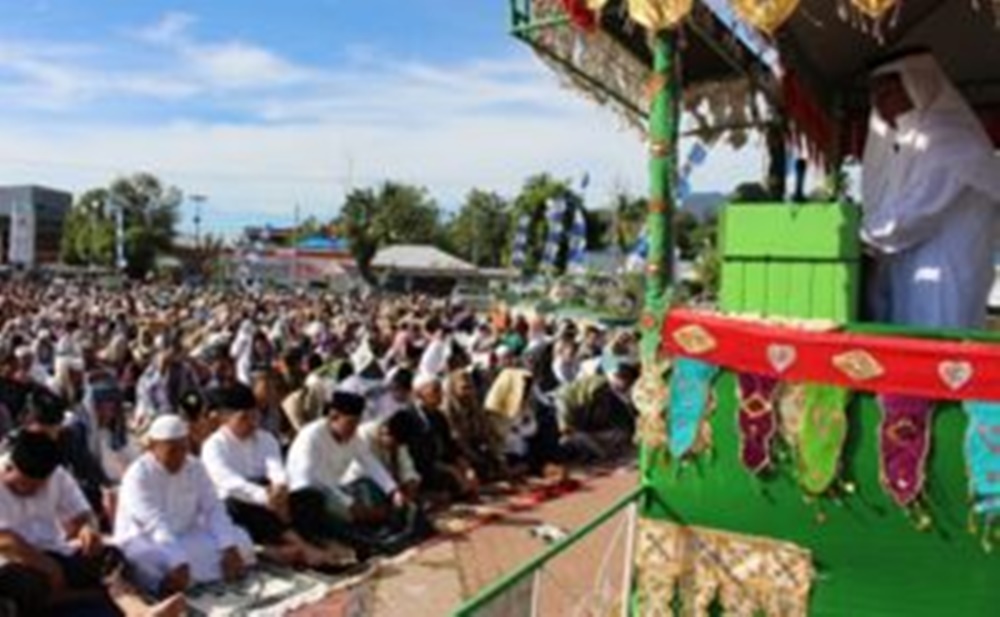 ADVETORIAL, BOLMONG – Bupati Bolaang Mongondow Salihi Mokodongan menjado kKhotib pada pelaksanaan Sholat Ied Idul Fitri 1437 H (06/07) di Lapangan Daagon Lolak Kabupaten Bolmong. Ribuan warga Bolmong memadati tempat pelaksanaan Sholat Ied yang dimulai sekitar pukul 07.30 WITA tersebut.