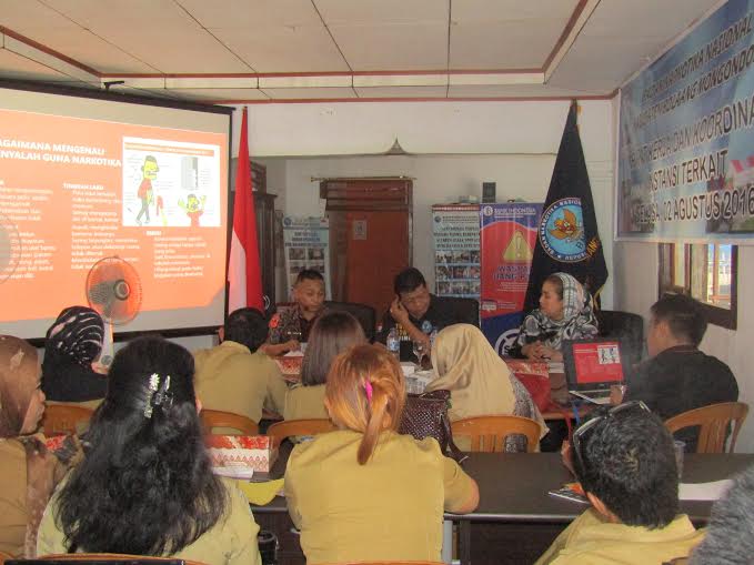 Rakor digelar di ruang rapat BNNK Bolmong tepatnya di Desa Mongkoinit Jl Trans Sulawesi Kecamatan lolak. Adapun para peserta ini adalah perwakilan dari lembaga / instansi Pemerintahan di Kabupaten Bolaang Mongondow. Pada rakor ini, bertindak selaku Narasumber adalah Kepala BNNK Bolmong AKBP Yuli Setiawan Dwi Purnomo, SH.