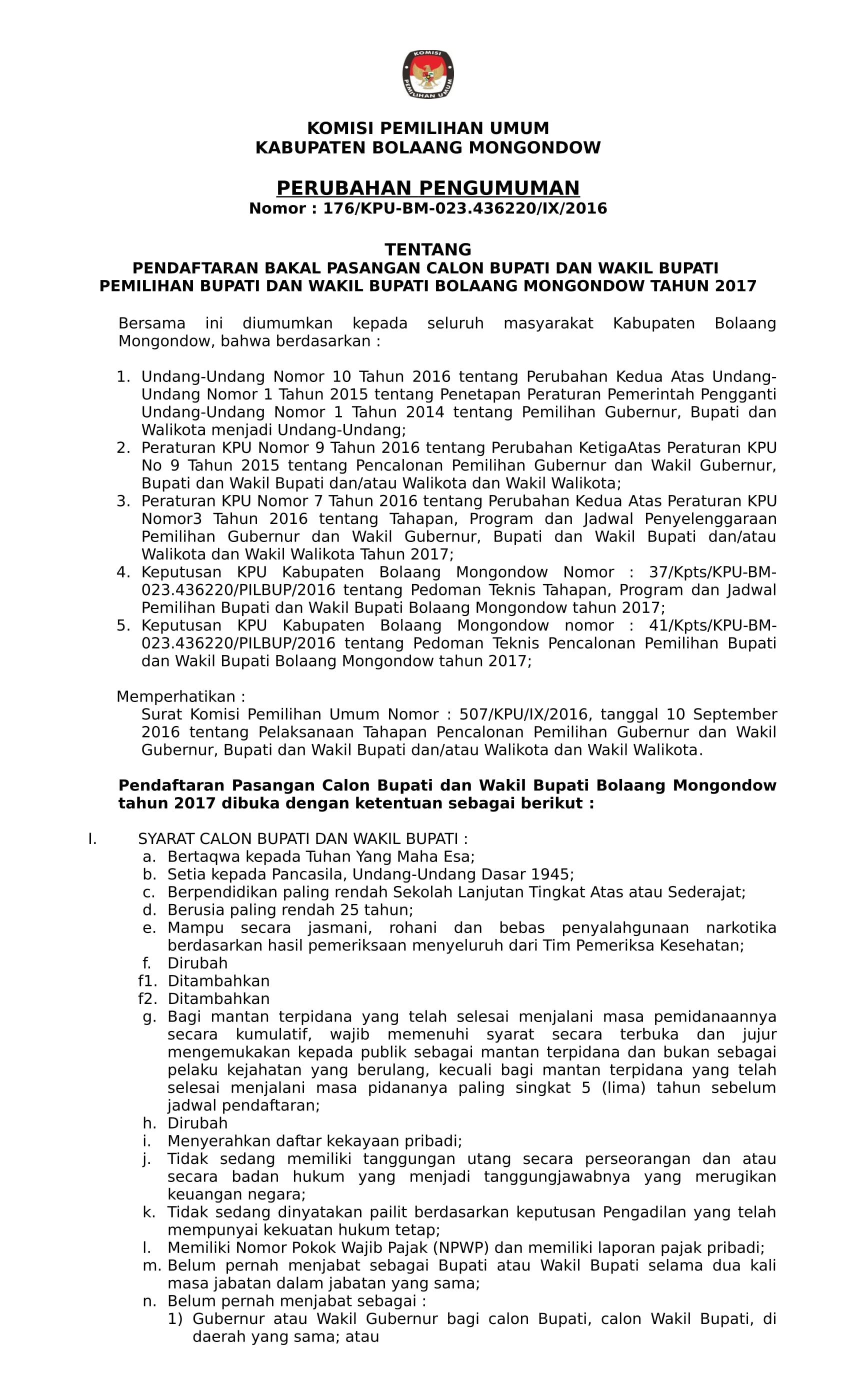 Ini Perubahan Pengumuman Pendaftaran Calon Sabtu, 17 September 2016oleh Redaksi-45 Dilihatoleh Redaksi Post Views: 45 Jangan LewatkanLSM LIRA Tuntut Klarifikasi Pemerintah Kota Binjai soal Pelantikan di PasarPelantikan Pejabat Eselon II Pemko Binjai di Pasar Tavip BerpolemikKPK Tangkap Gubernur Riau Abdul WahidDPRD Batam Komitmen Kawal Tragedi PT. ASL ShipyardDPRD Padang Lawas Apresiasi Kebijakan Pro-Rakyat Batam