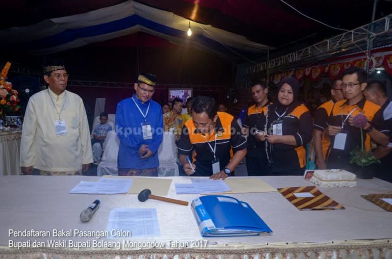 ADVETORIAL, BOLMONG – Pendaftaran Bakal Calon Kepala Daerah dan Wakil Kepala Daerah pemilihan serentak tahun 2017 berakhir Jumat (23/9) pada pukul 24.00 di 101 Daerah seluruh Indonesia. Pada hari terakhir masa pendaftaran ini, satu pasangan Bakal Calon mendaftar di KPU Kabupaten Bolaang Mongondow.