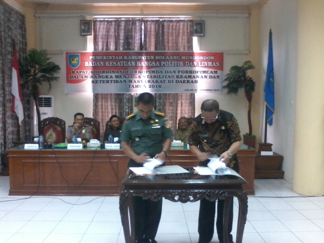 ADVETORIAL, BOLMONG – Pemerintah Kabupaten (Pemkab) Bolaang Mongondow (Bolmong), Polres Bolmong, bersama Kodim 1303 Bolmong, Kamis (01/09/2016), menyepakati dan menandatangi Naskah Perjanjian Hibah Daerah (NPHD).