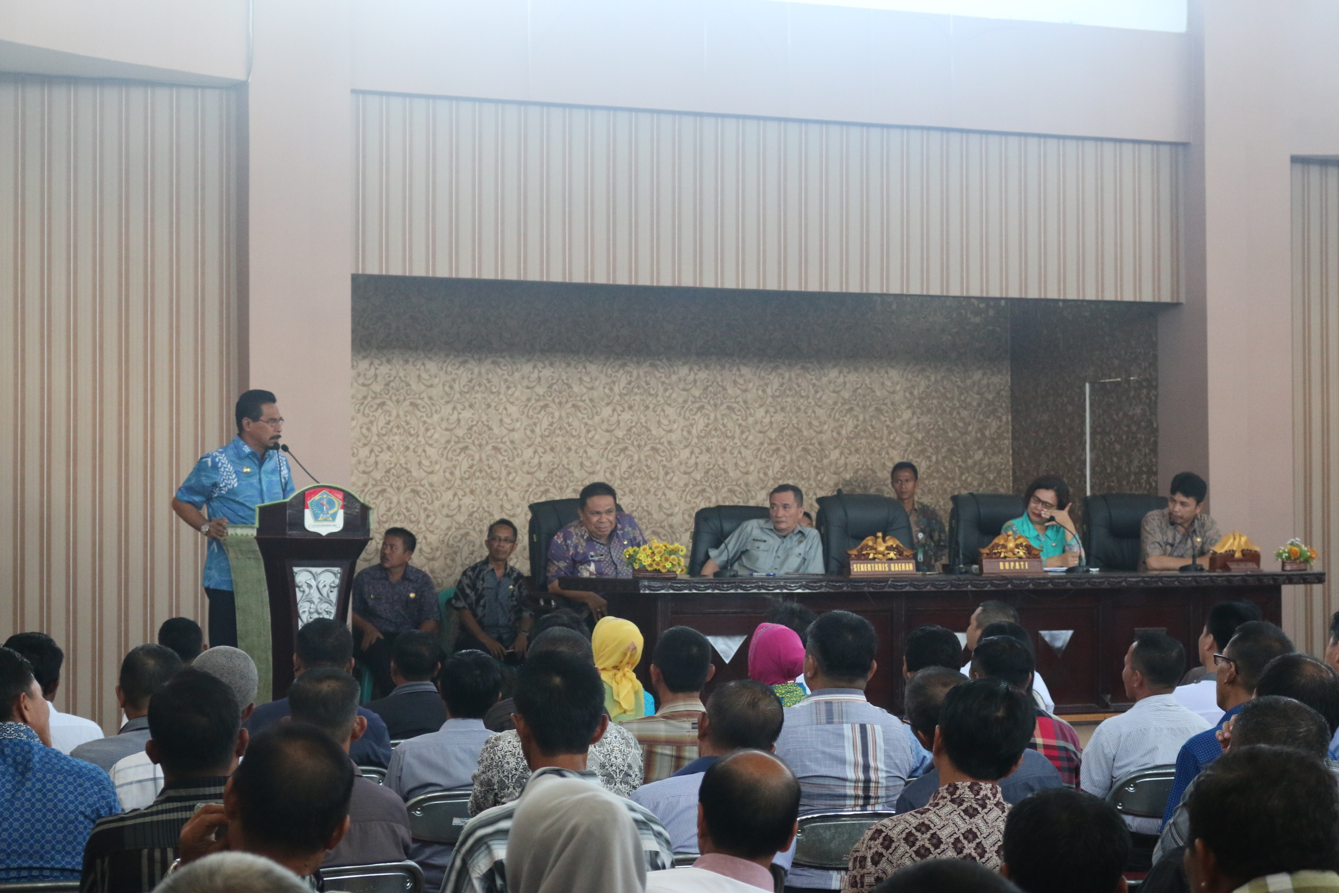 Dihadapan peserta, Bupati menyampaikan, Sangadi adalah perpanjangan tangan dan kepercayaan Bupati sehingga bertanggung jawab langsung kepada Bupati selaku user, “Sangadi tidak ada visi dan misi, yang ada adalah visi dan misi bupati yang wajib di implementasikan oleh Sangadi terpilih nantinya ” ungkap Bupati.