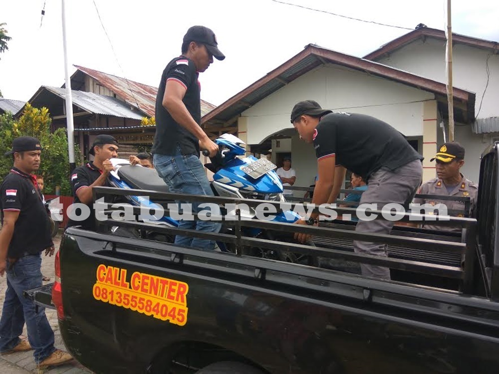 Tampak Barang Bukti (Babuk) sepeda Motor saat diangkut di Mobil Tim Maleo Polsek Kotamobagu. (foto. Gery Liangga)