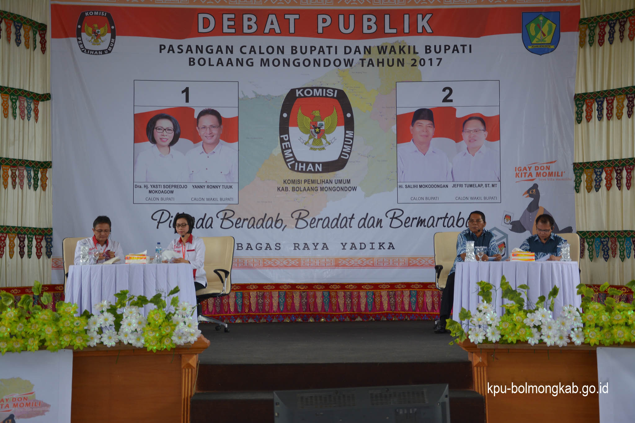 ADVETORIAL, BOLMONG – Debat Pilkada Bolmong yang dilaksanakan Komisi Pemilihan Umum (KPU) Bolmong, di gedung bagas raya yadika, Senin (30/1/2017), berjalan dengan lancar. Debat mengangkat tema Menimalisir Sumber Daya Alam (SDA) dan Sumber Daya Manusia (SDM).