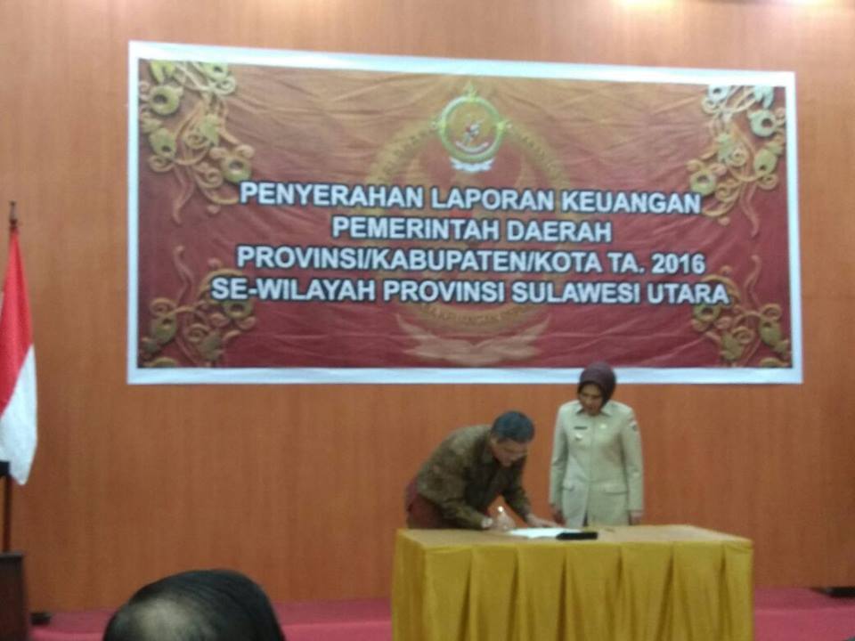 ADVETORIAL, KOTAMOBAGU — Wali Kota, Ir Hj Tatong Bara menyerahkan Laporan Keuangan Pemerintah Daerah (LKPD) Kota Kotamobagu tahun anggaran 2016, kepada Badan Pemeriksa Keuangan (BPK) perwakilan Sulawesi Utara (Sulut), Senin (03/04/2017).