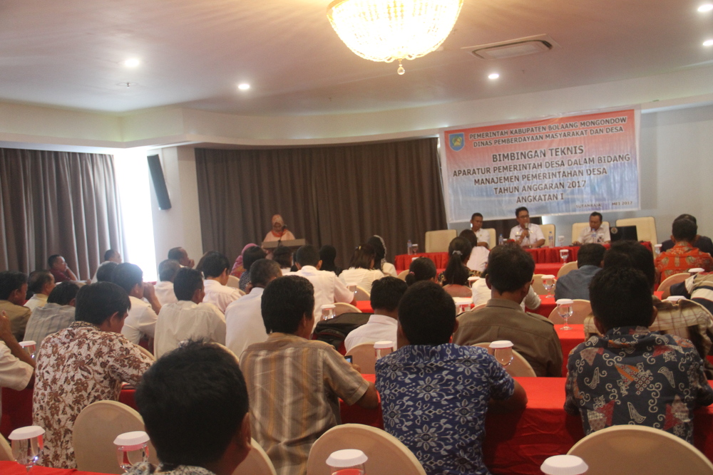 TOTABUANEWS, BOLMONG – Dinas Pemberdayaan Masyarakat dan Desa (DPMD)Bolmong, Rabu (3/5/2017), bertempat diruang Ball Room Paloko Hotel Sutan Raja Kotamobagu, menggelar Bimbingan Teknis (Bimtek) Aparatur Pemerintahan Desa dalam Manajemen Pemerintahan Desa Tahun 2017.