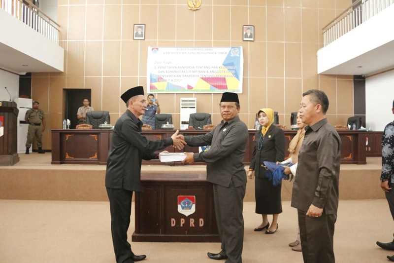 TOTABUANEWS, BOLTIM – Draft Rancangan Peraturan Daerah (Ranperda) Anggaran Pendapatan Belanja Daerah Perubahan (APBD-P), Kabupaten Bolaang Mongondow Timur (Boltim) tahun 2017 telah resmi di paripurnakan di gedung Dewan Perwakilan Rakyat Daerah (DPRD), Kamis (24/08/2017).