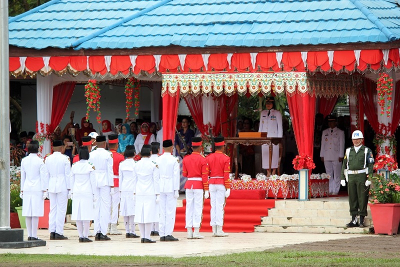 “Hari ini kita semua merayakan 72 tahun kemerdekaan bangsa ini. Mari kita maknai dan mengambil hikmah dari peringatan momentum yang sangat bersejarah ini. Semangat juang yang tinggi dan kerja keras para pahlawan kita yang merebut kemerdekaan, harus kita teladani. Tugas kita semua saat ini adalah melanjutkan kemerdekaan dengan kerja bersama,” kata Wali Kota Tatong Bara.