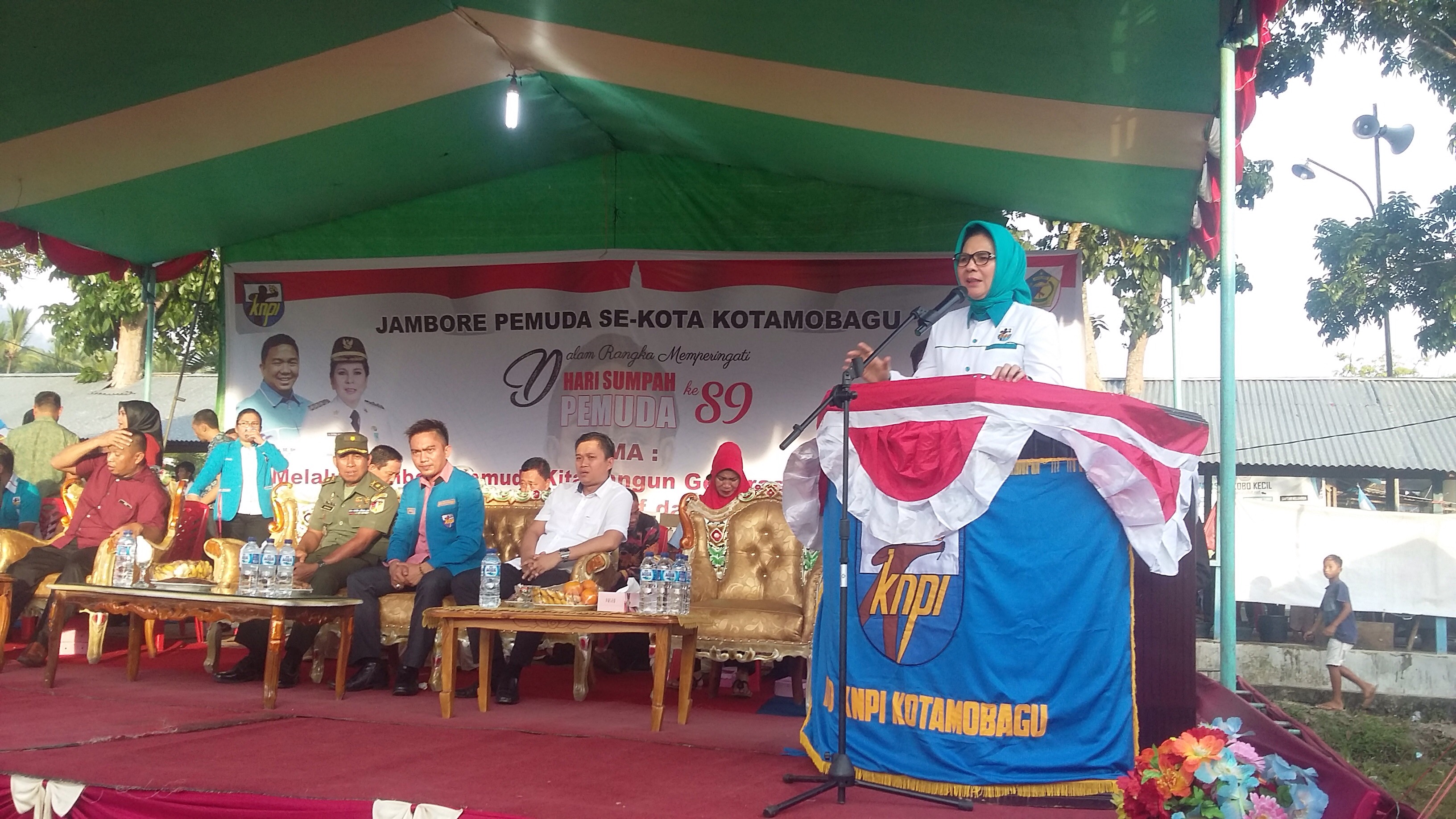 TOTABUANEWS.COM, ADVETORIAL, KOTAMOBAGU- Wali Kota Kotamobagu, Ir Hj Tatong Bara, Sabtu (28/10/2017), di Lapangan Olah Raga Desa Kobo Kecil, membuka Langsung Jambore Pemuda se Kota Kotamobagu (KK). Jambore yang digelar oleh DPD II KNPI Kotamobagu ini dalam rangka Sumpah Pemuda ke 89, tahun 2017.
