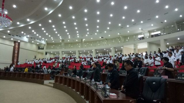 Rapat paripurna dipimpin langsung oleh Ketua DPRD Sulut Andrei Angouw didampingi 3 wakil ketua masing-masing Stevanus Vreeke Runtu, Marthen Manoppo dan Wenny Lumentut. Paripurna ini juga dihadiri Gubernur Olly Dondokambey dan Wakil Gubernur Steven O Kandouw.