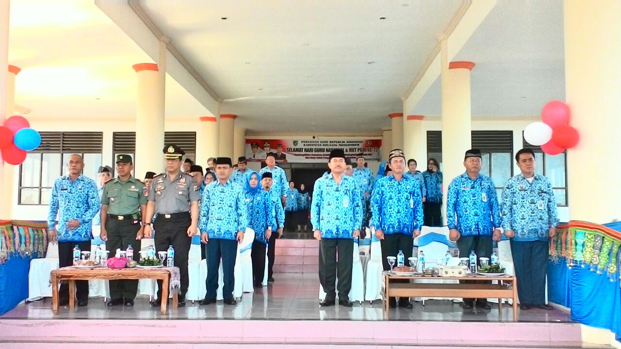 TOTABUANEWS, BOLMONG – Dirangkaikan dengan Hari Ulang Tahun Persatuan Guru Republik Indonesia (PGRI) ke-72 dan Hari Guru Nasional (HGN), serta Hari Kesehatan Nasional (HKN).