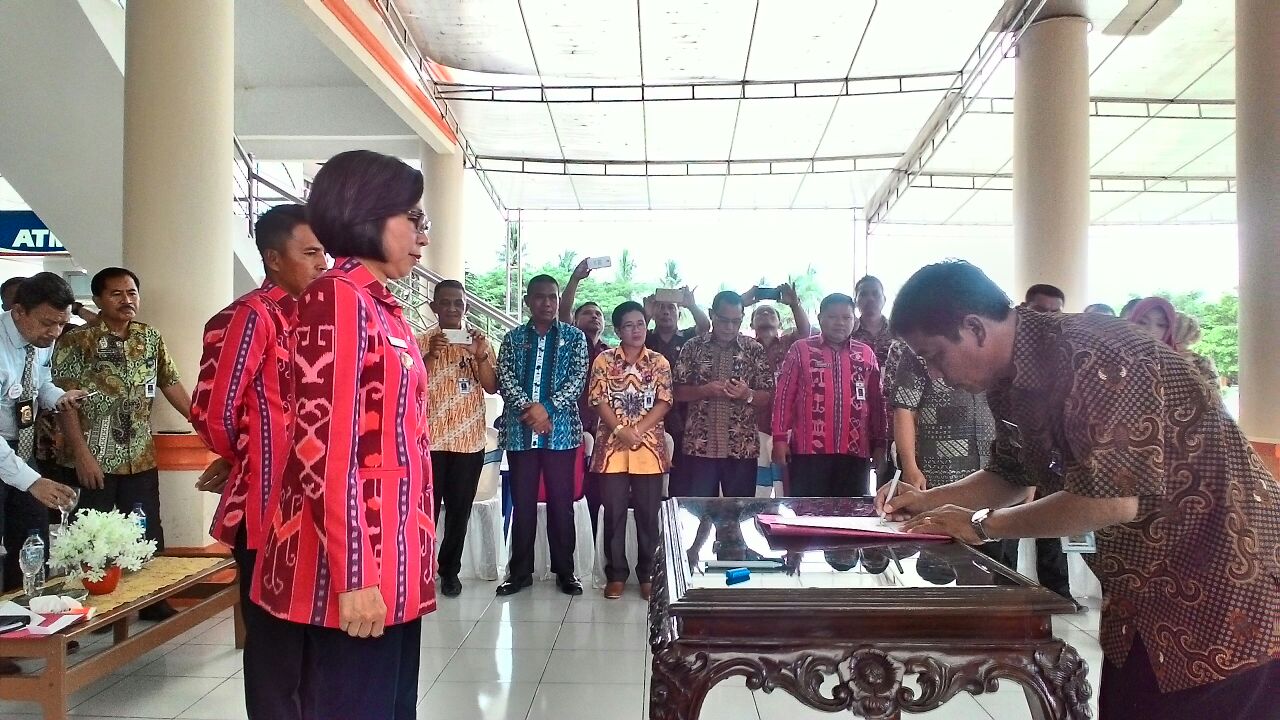 Bertempat di Lobi Kantor, Bupati Kabupaten Bolaang Mongondow (Bolmong), Yasti Soepredjo Mokoagow. Kamis (14/12/2017) melaksanakan penandatanganan perjanjian kinerja dengan kepala Kepala Organisasi Pimpinan Daerah (OPD) di lingkup pemerintahan.