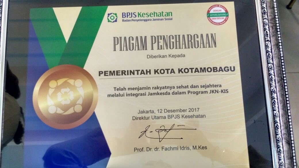 Dan juga dilaksanakan Penandatangan Kerjasama antara pihak Pemkot dengan Pihak Badan Penyelenggara Jaminan Sosial (BPJS) Kesehatan, dimana Pemerintah Daerah Kota Kotamobagu juga memperoleh Piagam Penghargaan dari BPJS Kesehatan, atas upaya Pemkot dalam menjamin Rakyat Sehat dan Sejahtera melalui Integrasi Jamkesda dalam Program JKN – KIS.