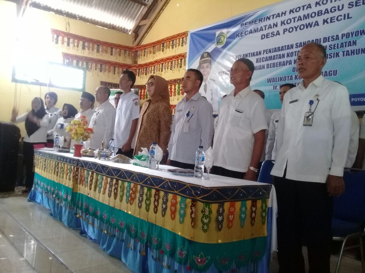 ADVETORIAL, KOTAMOBAGU – Wali Kota Kotamobagu, Ir. Tatong Bara melantik Penjabat Sementara (Pjs) Sangadi Desa Poyowa Kecil, Abdul Rifai Pobela, sekaligus juga meresmikan sarana dan prasarana fisik, Rabu,(31/01/2018) bertempat di Balai Desa Poyowa Kecil.