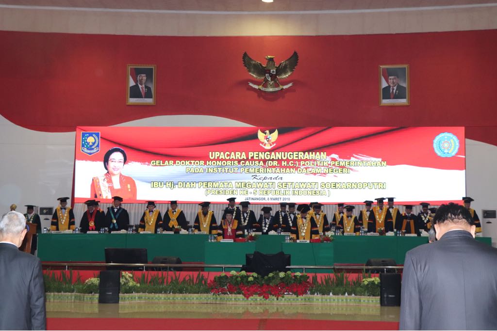 Acara penganugerahan dibuka oleh Gubernur IPDN Prof. Dr. Drs. Ermaya Suradinata, SH, M.H.,M.S. Ermaya menyatakan, gelar honoris causa ini merupakan yang pertama dianugerahkan sejak lembaga pendidikan itu berdiri sejak 1956. “Pemberian (gelar doktor honoris causa) untuk pertama kalinya sejak berdiri 1956 dengan nama Akademi Pemerintahan Dalam Negeri yang didirikan Presiden RI pertama Ir Soekarno, tepatnya 17 Maret bulan ini di Malang. Dan hari ini kita menyaksikan penganugerahan pertama,” kata Ermaya dalam sambutannya.