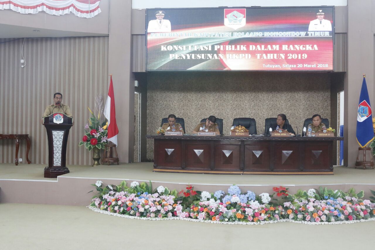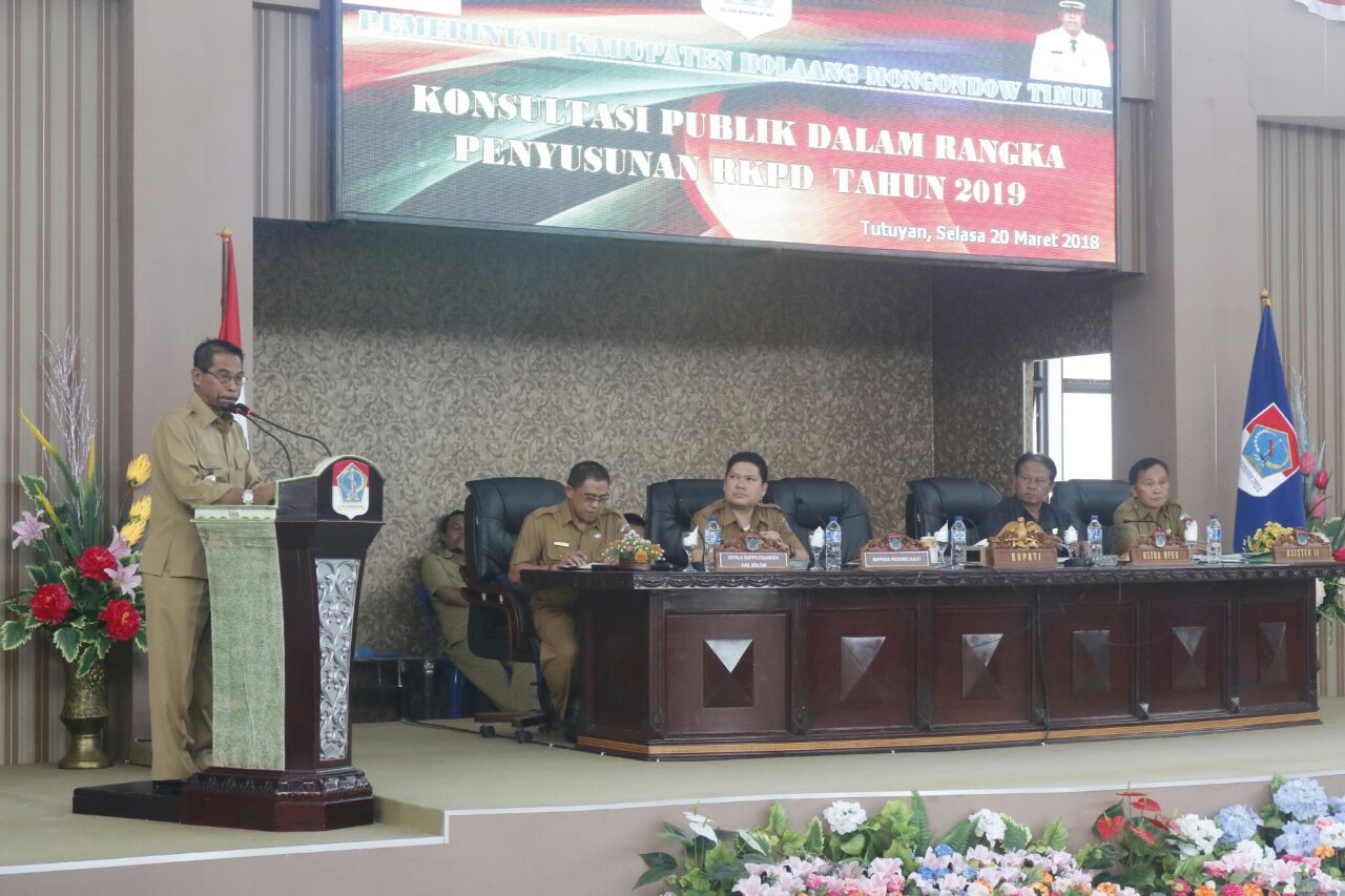 Untuk diketahui, Konsultasi publik dalam rangka penyusunan Rencana Kerja Pemerintah Daerah (RKPD) Tahun Anggaran 2019 dilaksanakan untuk menentukan arah kebijakan pembangunan tahun 2019 yang terintegrasi dan berkelanjutan dengan rencana RPJMD perubahan Pemkab Boltim tahun 2016-2021.