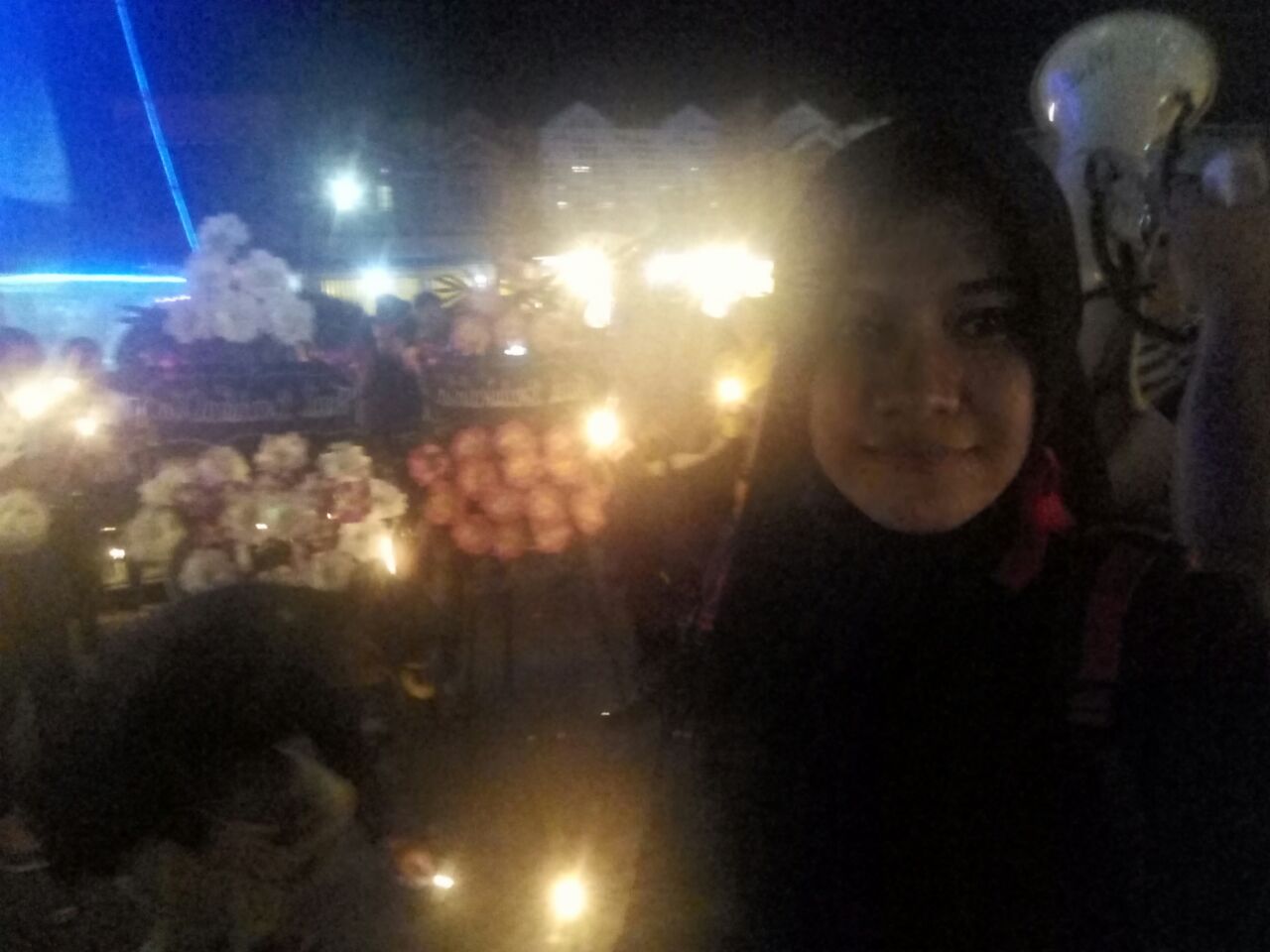 “Apapun agamamu, apa pun sukumu, kita satukan hati, dan empati, kepada saudara kita yang menjadi korban teror, agar senantiasa diberi kekuatan dan kesabaran, dan mengajak peserta aksi untuk mengajak mengheningkancipta. Mendoakan arwah,” katanya.