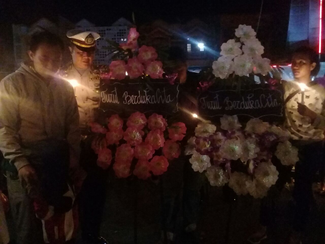 TOTABUANEWS, KOTAMOBAGU – Masyarakat Kotamobagu yang tergabung dari berbagai agama, ormas, dan suku, melakukan aksi menolak tindak teror yang terjadi Surabaya, dengan menyalakan lilin di jalan Ahmad Yani, tepat di bundaran Paris Superstore, Minggu malam, (13/05/2018).