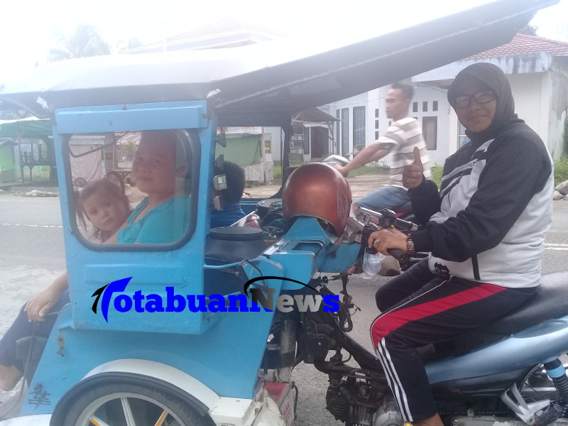 TOTABUANEWS, KOTAMOBAGU – Memilih jadi sopir Becak Motor (Bentor) Hasna Murni Nur (48), warga Kelurahan Pobundayan, Kecamatan Kotamobagu Selatan, Kota Kotamobagu, tampak tak kalah optimis, dibandingkan para penyedia jasa antar jemput ini, yang paling banyak didominasi oleh para lelaki.