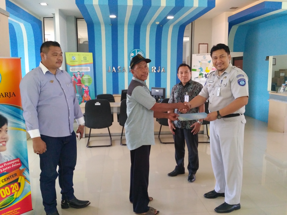 TOTABUANEWS, BOLMONG – PT Jasa Raharja Persero Perwakilan Kotamobagu, Selasa (26/6/2018). Menyerahkan santunan kecelakan ke enam orang ahli waris korban kecelakaan lalu lintas.
