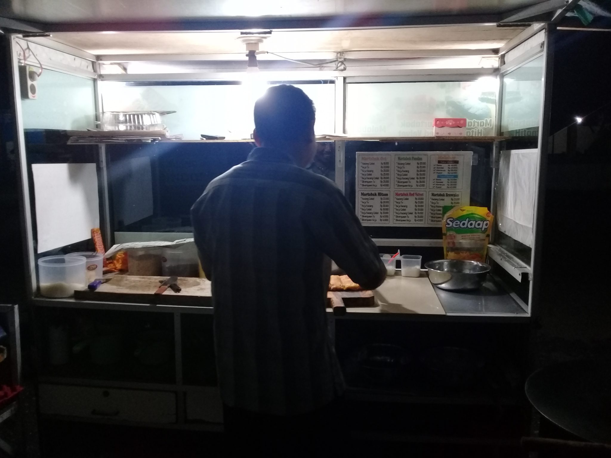 Lelaki asal Desa Lebak Siuk, Kabupaten Tegal, Jawa Timur ini sudah hampir 5 tahun berjualan martabak di Kotamobagu, dan sekarang setiap malam mangkal, di sepanjang jalan19 Desember, Kelurahan Motoboi Kecil.