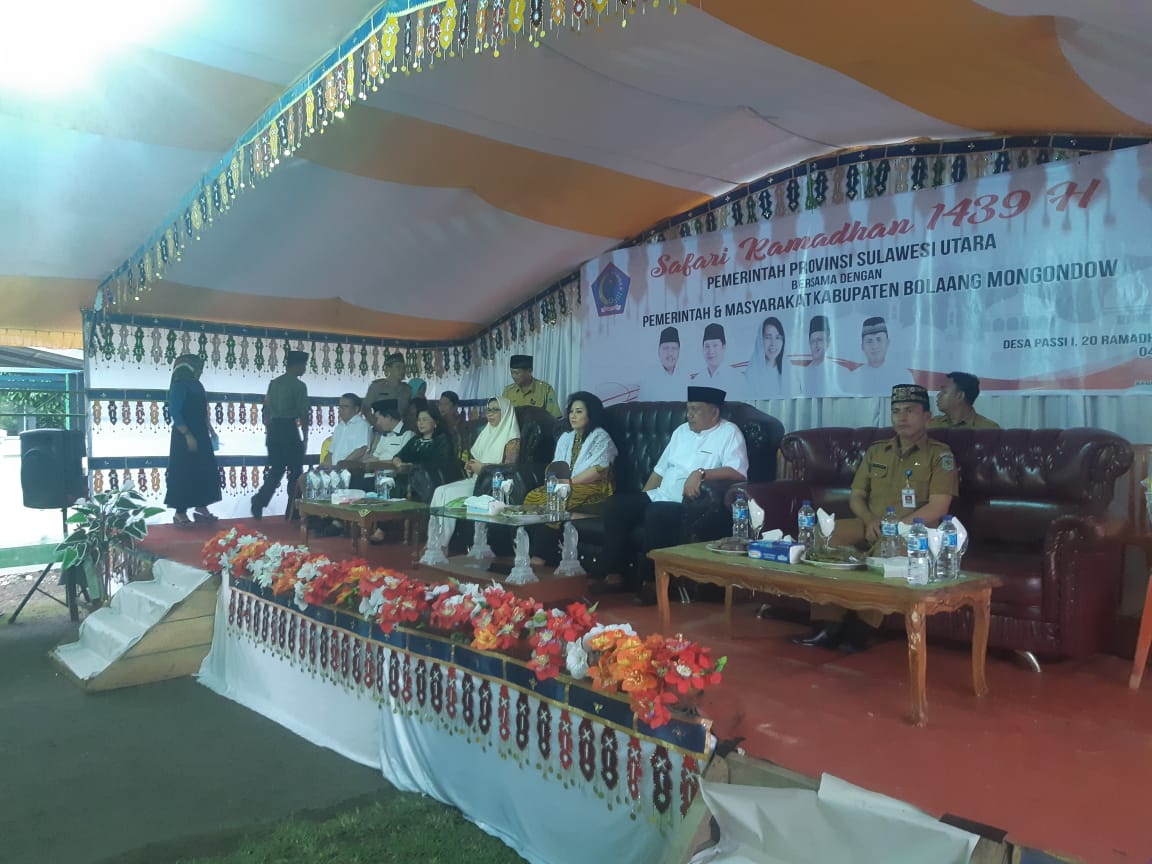 ADVERTORIAL, BOLMONG – Gubernur dan Jajaran Pemerintah Provinsi (Pemprov) Sulawesi Utara (Sulut), bersama Bupati dan Organisasi Perangkat Daerah (OPD) Kabupaten Bolaang Mongondow (Bolmong), melaksanakan Safari Ramadan di Desa Passi Kecamatan Passi Barat, Senin (4/6/2018).