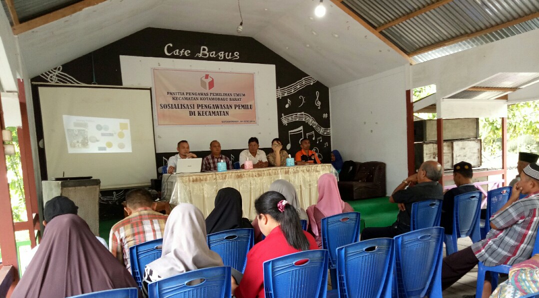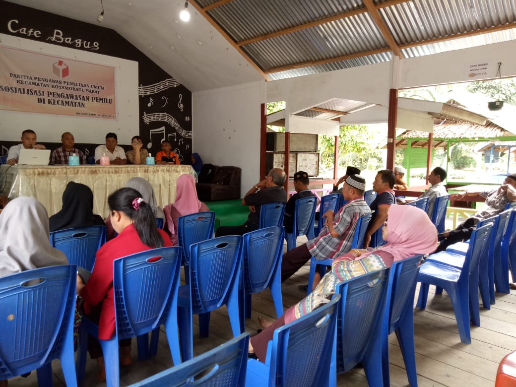 Dalam pantauan, sosialisasi dengan tema Pengawasan Pemilu di Kecamatan, dihadiri Camat Kotamobagu Barat, LPM, PPK, PPS tokoh agama, tokoh pemuda dan tokoh masyarakat lainnya se kecamatan Kotamobagu Barat.
