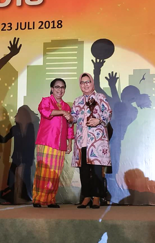 Kedua penghargaan ini diterima Walikota Kotamobagu Ir Hj Tatong Bara yang diserahkan langsung oleh Menteri Pemberdayaan Perempuan dan Perlindungan Anak Republik Indonesia. Yohana Yambise, pada puncak peringatan Hari Anak Nasional (HAN) 2018, yang dilaksankan di Dyandra Covension Center, Surabaya. Senin (23/7/2018). Kemarin.