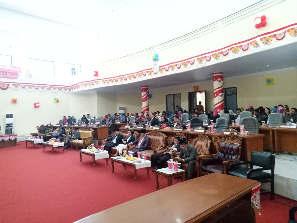 ADVETORIAL, BOLMONG— Dewan Perwakilan Rakyat Daerah (DPRD) Kabupaten Bolmong, menggelar sidang paripurna istimewa mendengarkan pidato kenegaraan penyampaian pidato Presiden RI Joko Widodo melalui televisi, di ruang paripurna DPRD Bolmong Kamis, (16/8).