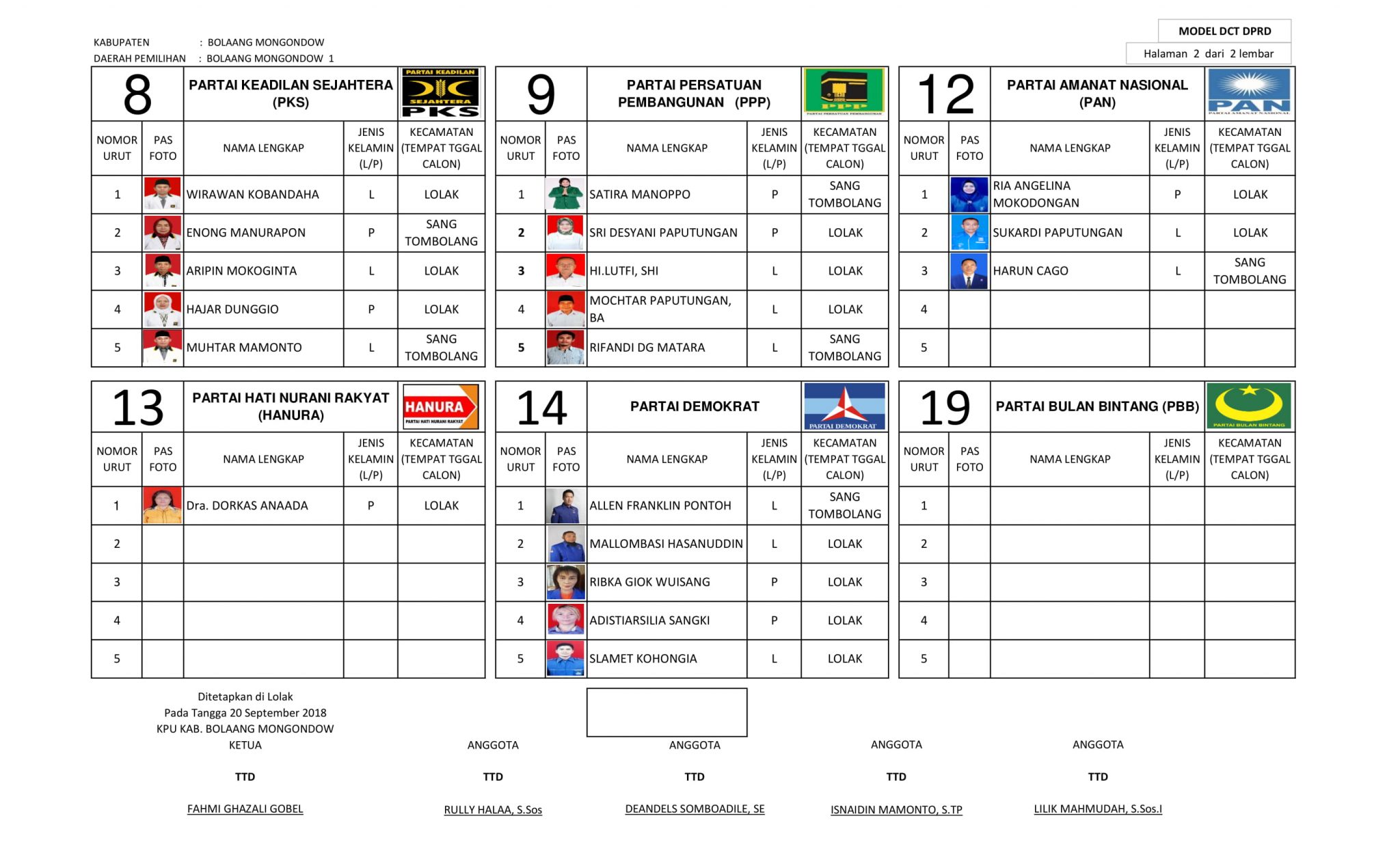 Daftar Calon Tetap Anggota DPRD Kabupaten Bolaang Mongondow Pemilu 2019 Dapil 1 Jumat, 21 September 2018Jumat, 21 September 2018oleh Redaksi-46 Dilihatoleh Redaksi Post Views: 46 Jangan LewatkanGonjang-Ganjing Seleksi KPID Bengkulu: Gelap, Berbelit, dan Dibayang-bayangi Kepentingan PolitikLSM LIRA Tuntut Klarifikasi Pemerintah Kota Binjai soal Pelantikan di PasarPelantikan Pejabat Eselon II Pemko Binjai di Pasar Tavip BerpolemikKPK Tangkap Gubernur Riau Abdul WahidDPRD Batam Komitmen Kawal Tragedi PT. ASL Shipyard