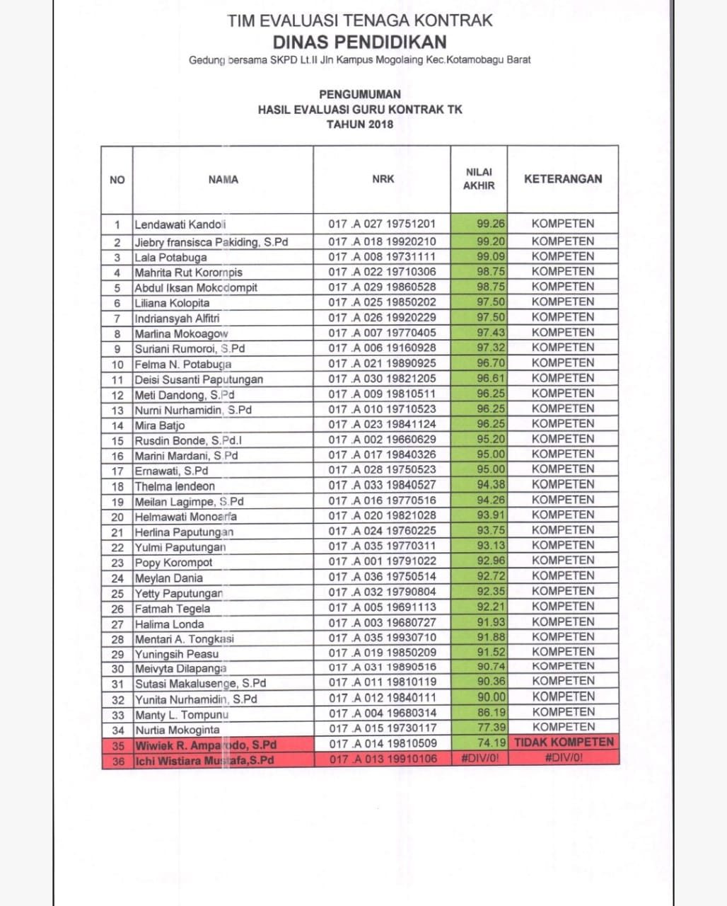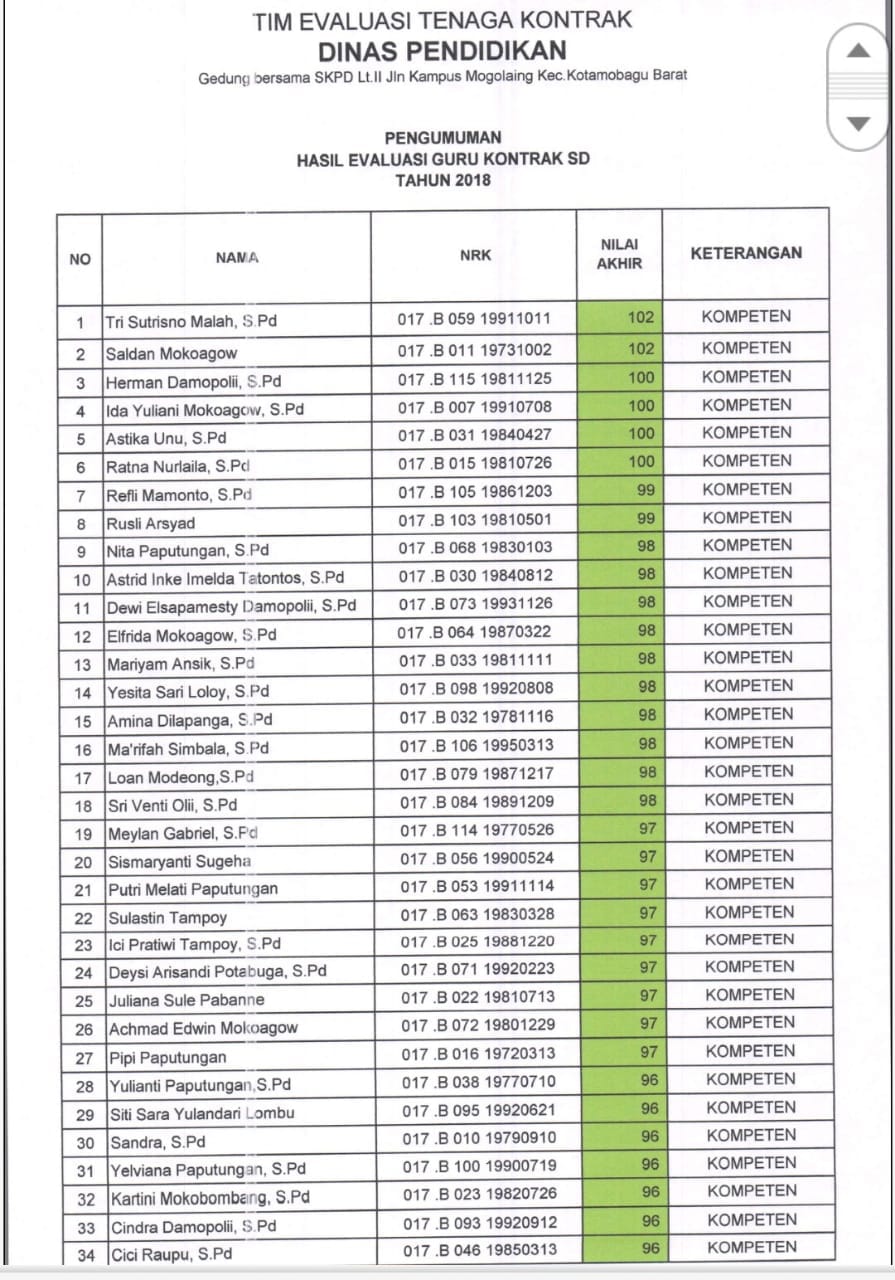 “Kepada mereka yang lulus akan kami panggil kembali, dan yang tidak lulus otomatis sudah tidak lagi menjadi guru kontrak,” singkat Kepala BKPP Sahaya Mokoginta, Rabu (12/9/2018).