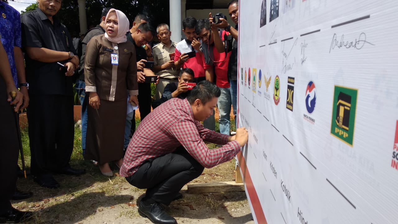 Pantauan TOTABUAN.NEWS, usai pembacaan sambutan Walikota, deklarasi ini dilanjutkan dengan penandatanganan Baliho Deklarasi Pemilu Damai 2019 oleh Pejabat Forkopimda, Bawaslu, KPU, Perwakilan Partai Politik serta Tokoh Agama.