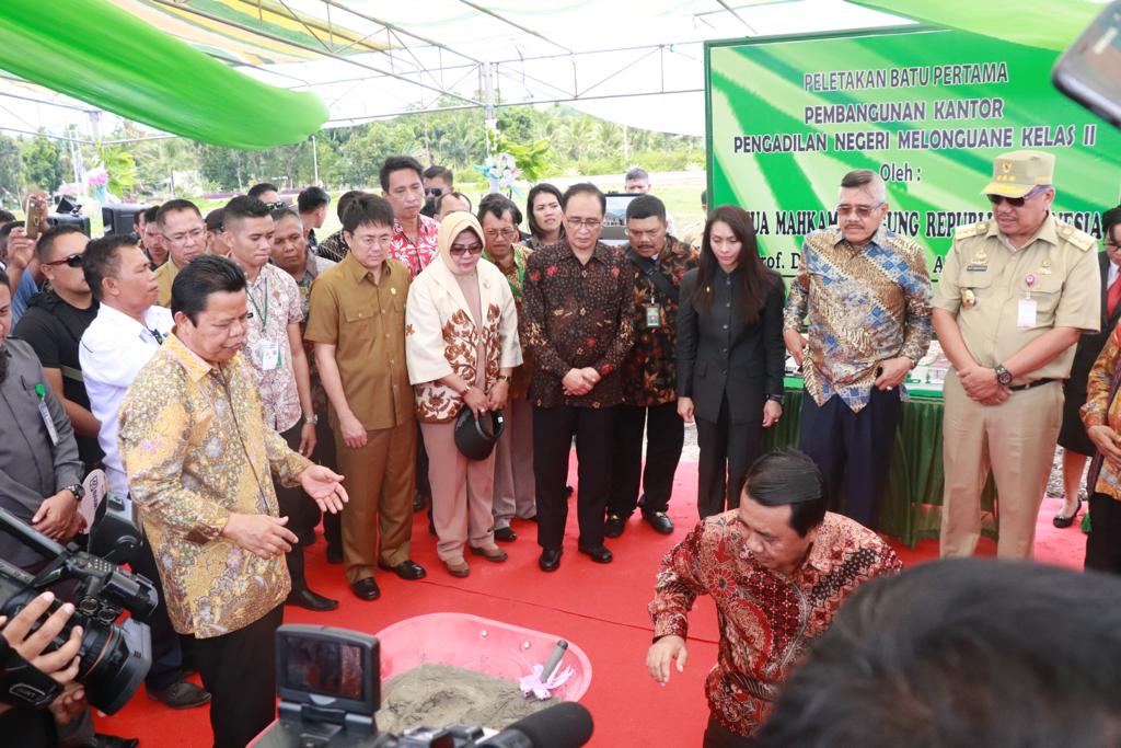 Acara diakhiri dengan peletakan batu pertama pembangunan kantor pengadilan negeri melonguane kelas II oleh Ketua MA, Wakil Ketua MA, Gubernur Sulut dan Bupati Kepulauan Talaud.