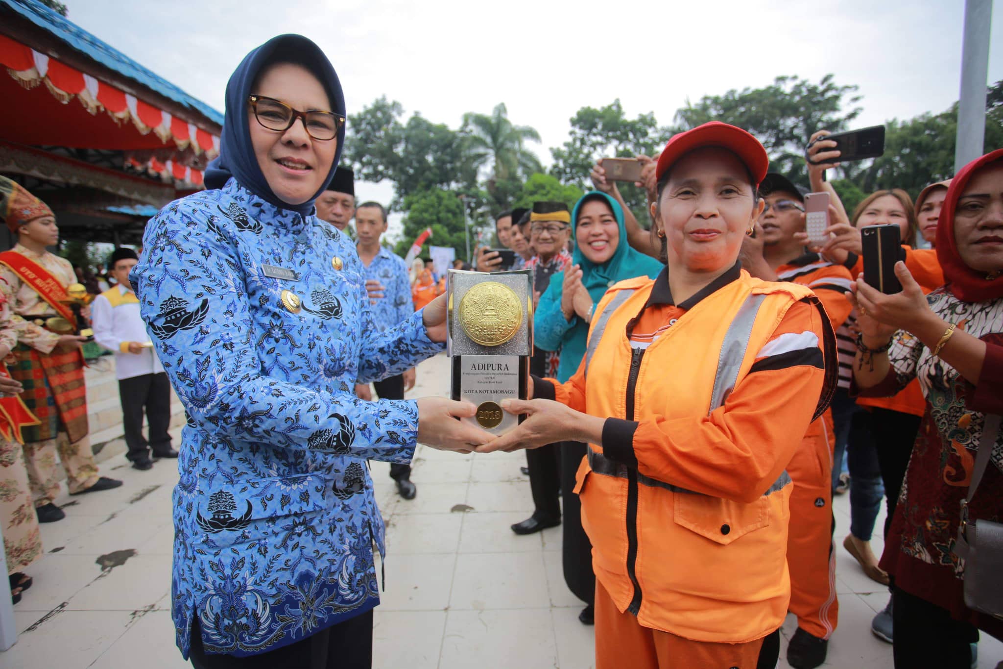 Menurut Walikota, keberhasilan penghargaan tingkat nasional berupa piala Adipura merupakan hasil upaya serta hasil kerja keras seluruh elemen masyarakat. “Untuk itu Piala Adipurna ini untuk dan milik seluruh elemen masyarakat kotamobagu yang telah berkomitmen serta bertekad untuk terus menjaga kebersihan agar menjadi Asri, Nyaman dan Sehat,” ungkapnya.
