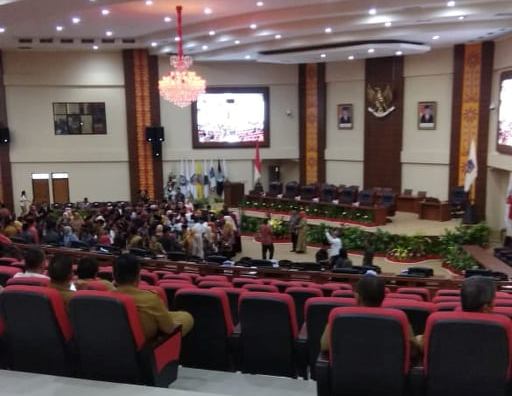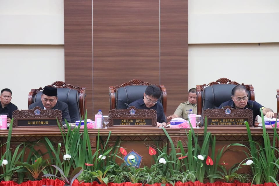 ADVETORIAL, MANADO – Dewan Perwakilan Rakyat Daerah (DPRD) Provinsi Sulawesi Utara (SULUT), Selasa (23/04/19) pagi, menggelar rapat Paripurna DPRD Sulut dengan agenda, Penutupan Masa sidang pertama tahun 2019, Laporan Kinerja Masa Persidangan Pertama oleh Alat Kelengkapan Dewan, Pembukaan Masa Persidangan kedua tahun 2019, Laporan Hasil Reses Pertama tahun 2019, Penyampaian penjelasan Gubernur terhadap laporan keterangan Pertanggungjawaban Gubernur Sulut tahun 2018. Rapat Paripurna ini dipimpin oleh Ketua DPRD Sulut, Andrei Angouw, didampingi Wakil Ketua Drs.Vreke Runtu, Wenny Lumentut dan Marthen Manoppo serta dihadiri oleh Gubernur Sulut Olly Dondokambey dan Wagub Steven Kandow.
