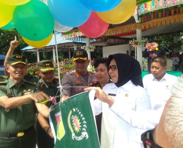 ADVETORIAL, KOTAMOBAGU — Wali Kota Kotamobagu Ir Hj Tatong Bara membuka secara resmi kegiatan lomba pembinaan teritorial binter 2019 yang digelar Komando Distik Militer (Kodim) 1303 Bolaang Mongondow (BM), di lapangan Kotamobagu, Rabu (19/06/2019).