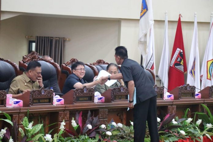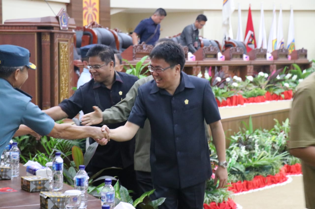 Adapun rapat paripurna turut dihadiri oleh jajaran Forkopimda, Ketua DPRD Andrei Angouw, Sekdaprov Edwin Silangen, SE, MS dan para pejabat Pemprov Sulut. (Humas Pemprov Sulut)