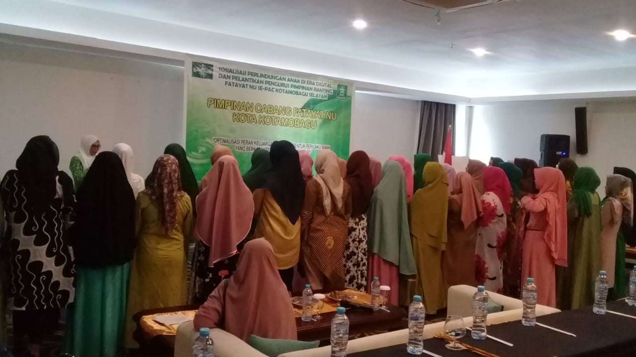 TNews, KOTAMOBAGU – Pengurus Fatayat Nahdatul Ulama (NU) Cabang Kota Kotamobagu, menggelar kegiatan Pelantikan Pimpinan Ranting PAC Kotamobagu Selatan (Kotsel). Sekaligus sosialisasi perlindungan anak di Era Digital Minggu (01/12/2019) di hotel Sutan Raja Kotamobagu.