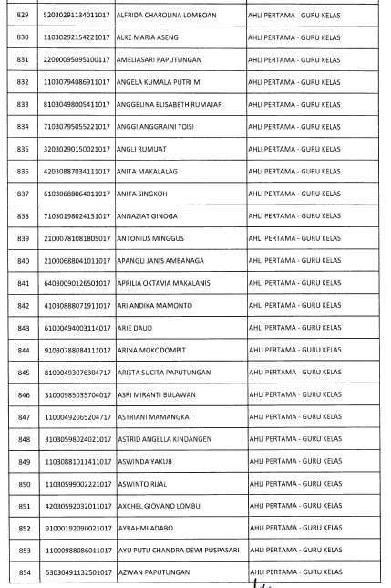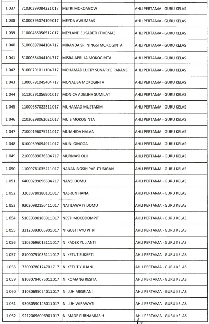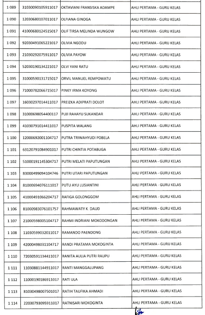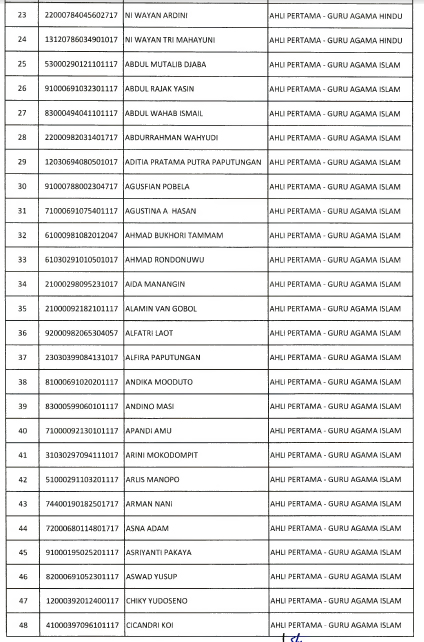 Berikut daftar nama yang lulus seleksi administrasi :