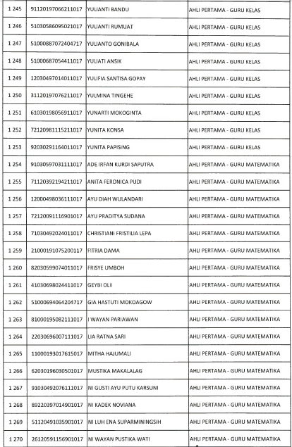 Berikut daftar nama yang lulus seleksi administrasi :