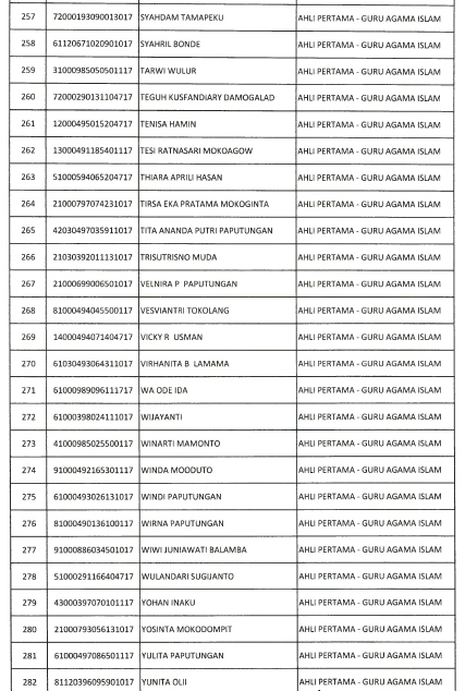 Berikut daftar nama yang lulus seleksi administrasi :