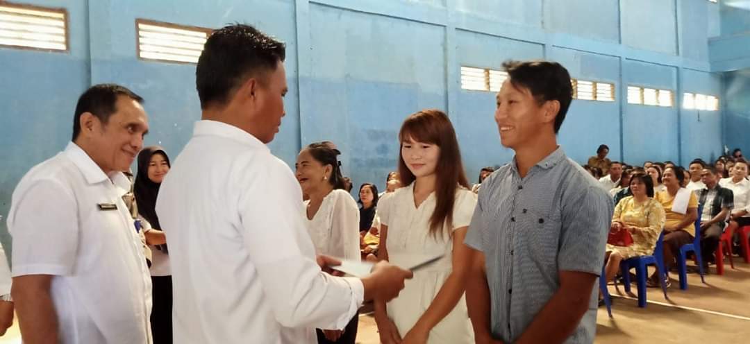 Diketahui, Sekretaris Daerah Bolmong Tahlis Gallang didampingi Kepala Disdukcapil, Iswan Gonibala, menyerahkan akte nikah sebagai administrasi pencatatan kepada pasangan yang mengikuti Nikah massal. Hadir dalam acara itu pihak keluarga para pasangan. Bahkan anak dari pasangan mereka juga ikut hadir.
