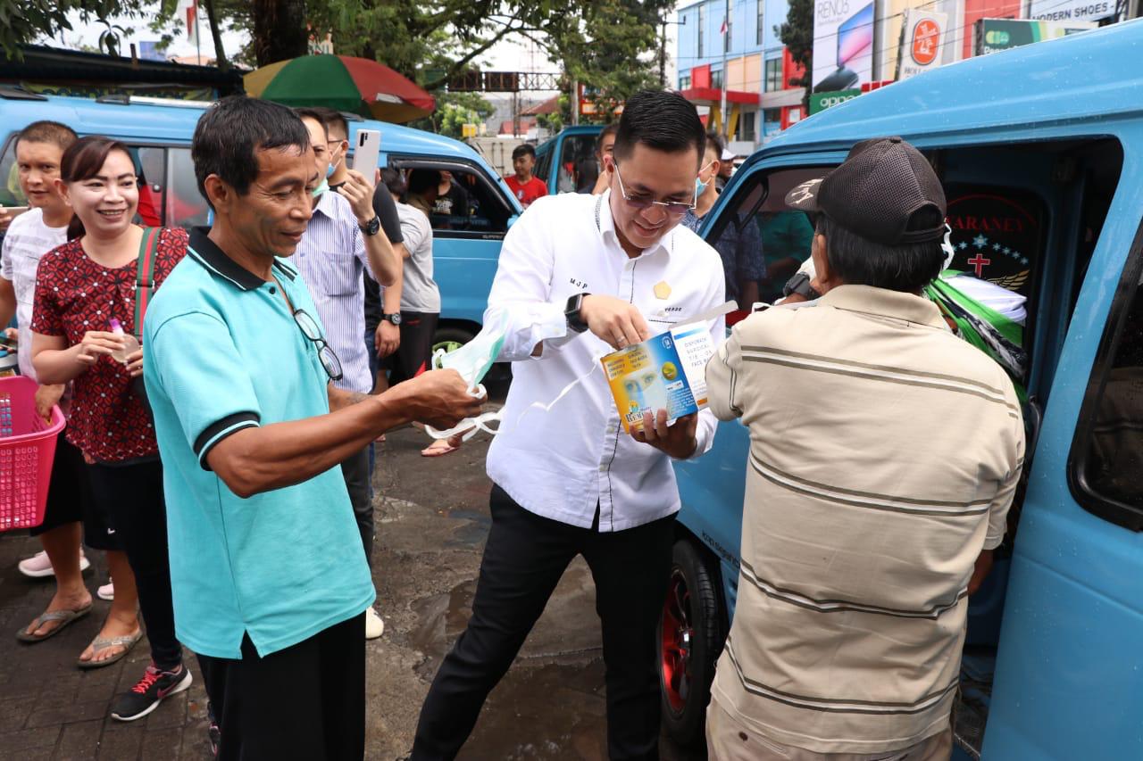 T.NEWS- AnggotaDPRD Provinsi Sulawesi Utara dari Partai Solidaritas Indonesia (PSI) Melky Jakhin Pangemanan (MJP) turun lapangan membagikan Masker gratis kepada warga.