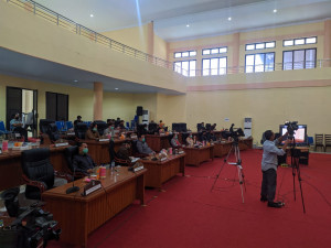 Ada yang menarik saat kegiatan paripurna tersebut, bahkan terlihat berbeda, jika sebelumnya rapat paripurna diikuti oleh seluruh anggota DPRD serta Bupati dan pimpinan SKPD di lingkup Pemkab Bolmong. Kali ini ruang paripurna hanya anggota DPRD Bolmong, adapun Bupati dan masing masing SKPD tetap mengikuti rapat paripurna namun melalui Video Conference.