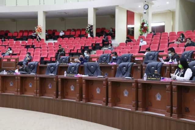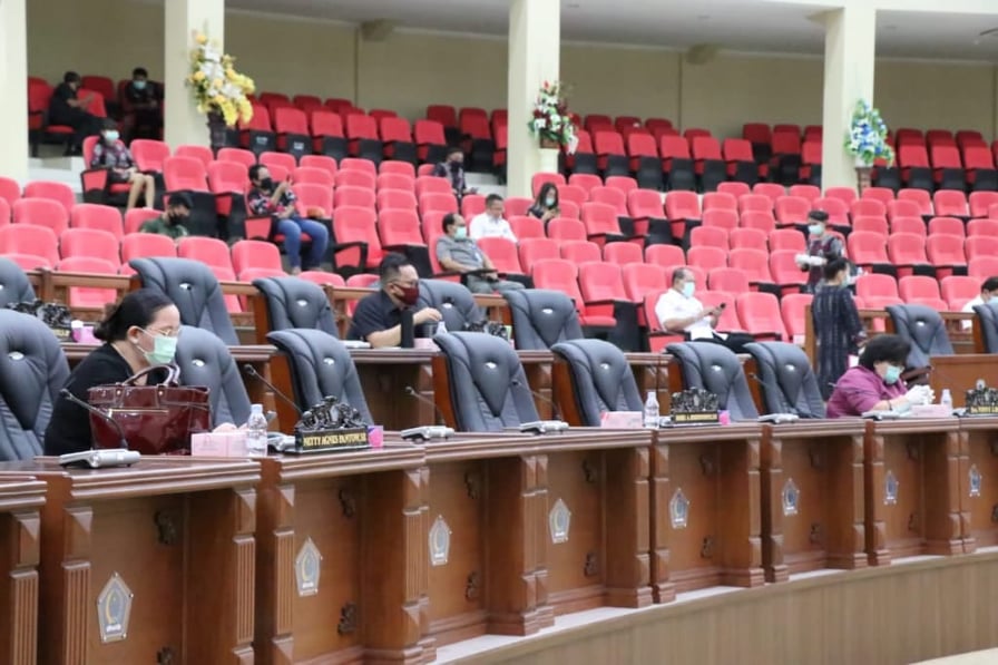 Meski demikian, DPRD Sulut tetap mengacu pada protap kesehatan dengan membatasi peserta paripurna. Peripurna hanya dihadiri pimpinan DPRD, 17 anggota DPRD hadir secara fisik. Sementara secara virtual, 28 anggota. Dalam ruangan juga terlihat Sekprov Edwin Silangen, para asisten, Karo Pemerintahan, serta perwakilan pers.